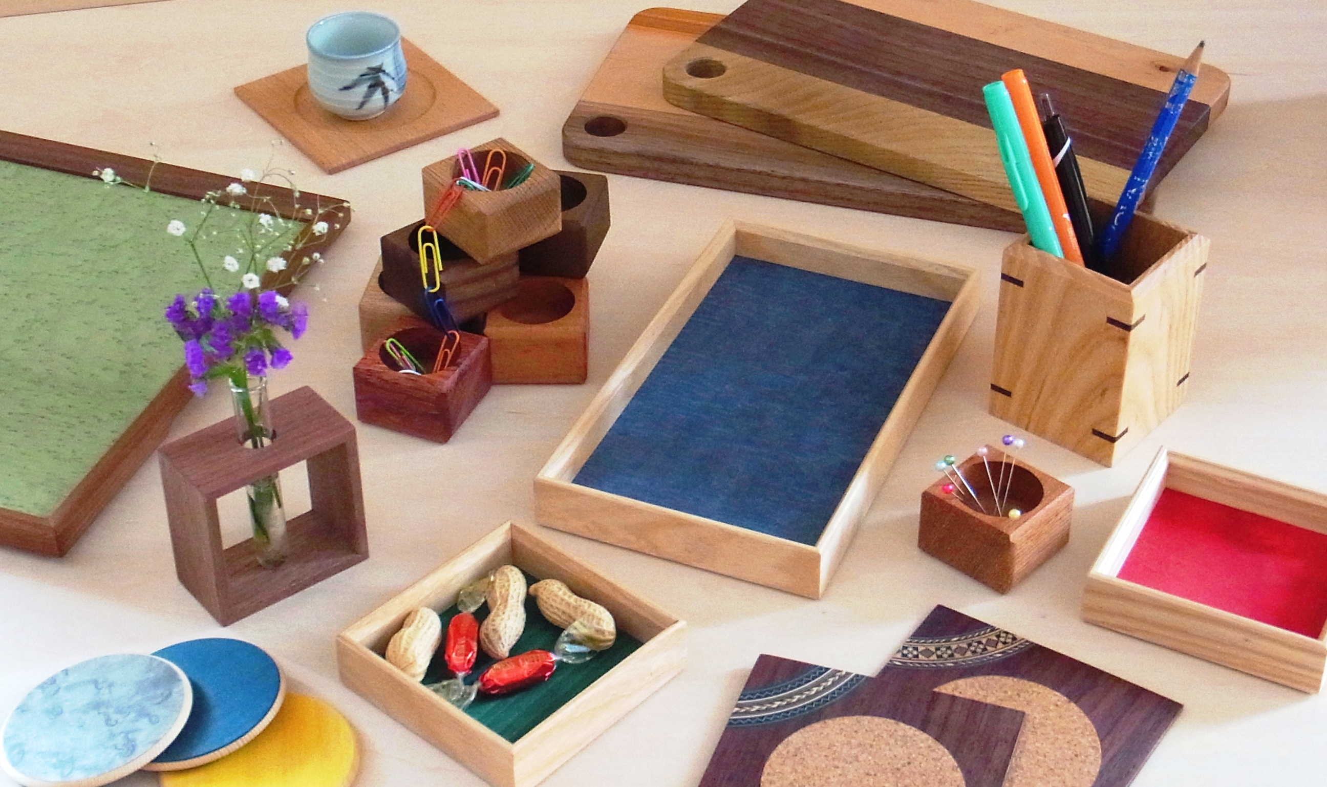 ITEM:籐編みの椅子、ペン立てトレーなどの木工雑貨
